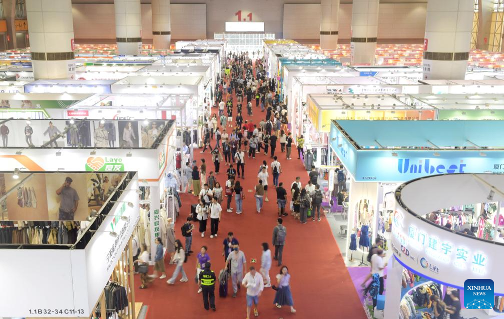 A merchant shops for bedding products at the 136th China Import and Export Fair in Guangzhou, south China’s Guangdong Province,…