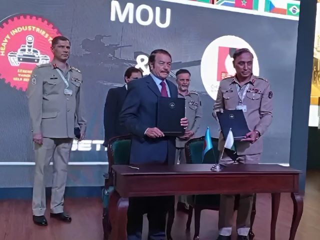 Another agreement was made with Chenab Engineering Works & Foundries. Brigadier Nadeem Ahsan from Pakistan and Ahmed Hassan from Chenab Company signed the MOU during the event.