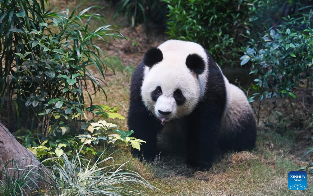 A giant panda eats bamboo at Ocean Park Hong Kong in Hong Kong, south China, Dec. 8, 2024. Giant pandas “An An” and “Ke Ke” gifted by the central government to the Hong Kong Special Administrative Region (HKSAR) made their public debut at Ocean Park Hong Kong on Sunday. (Xinhua/Chen Duo)