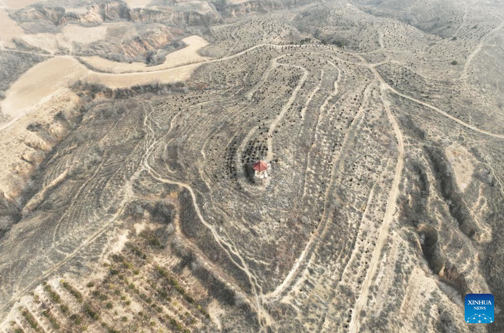 This file aerial drone photo shows the distribution of tombs at the Zhongcun site in Xiyang County, north China’s Shanxi Province. (Xinhua)