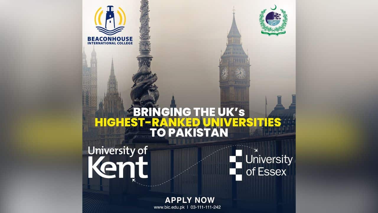 Beaconhouse International College (BIC) has taken a significant leap forward in transforming higher education in Pakistan by partnering with two of the UK’s top-ranked universities: the University of Essex and the University of Kent. These partnerships mark a milestone for BIC as it brings world-class education to Pakistani students, making globally recognized degrees more accessible and affordable.