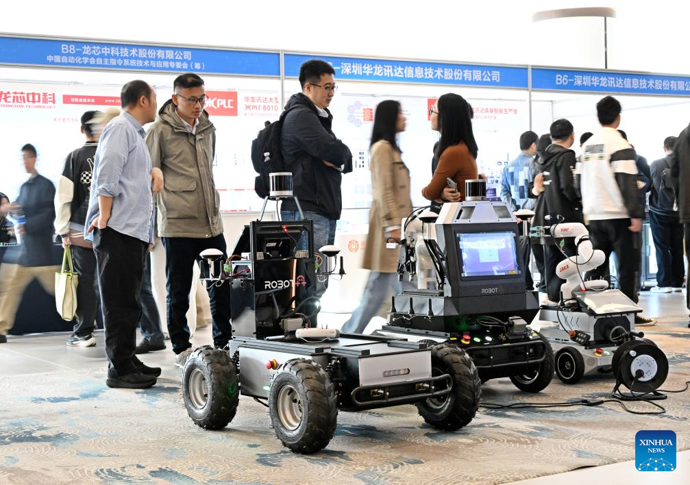Participants visit the exhibition area of the 2024 China Automation Congress in Qingdao, east China’s Shandong Province, Nov. 2, 2024. The 2024 China Automation Congress, which focuses on the deep integration of automation and artificial intelligence as well as explores the innovative development of new industries and technologies, would last from Nov. 1 to Nov. 3 here. (Xinhua/Li Ziheng)