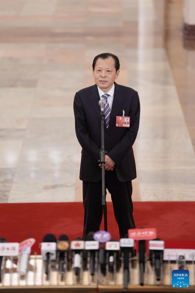 Chinese Minister of Education Huai Jinpeng gives an interview after the opening meeting of the third session of the 14th…