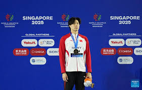 Qin Haiyang of China competes during the men’s 200m breaststroke final at the World Aquatics Championships in Singapore, Aug. 1,…