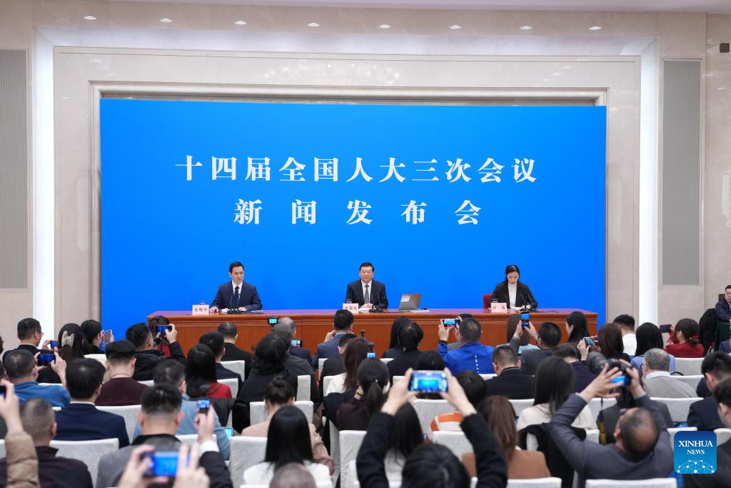 Lou Qinjian, spokesperson for the third session of the 14th National People’s Congress (NPC), attends a press conference at the…