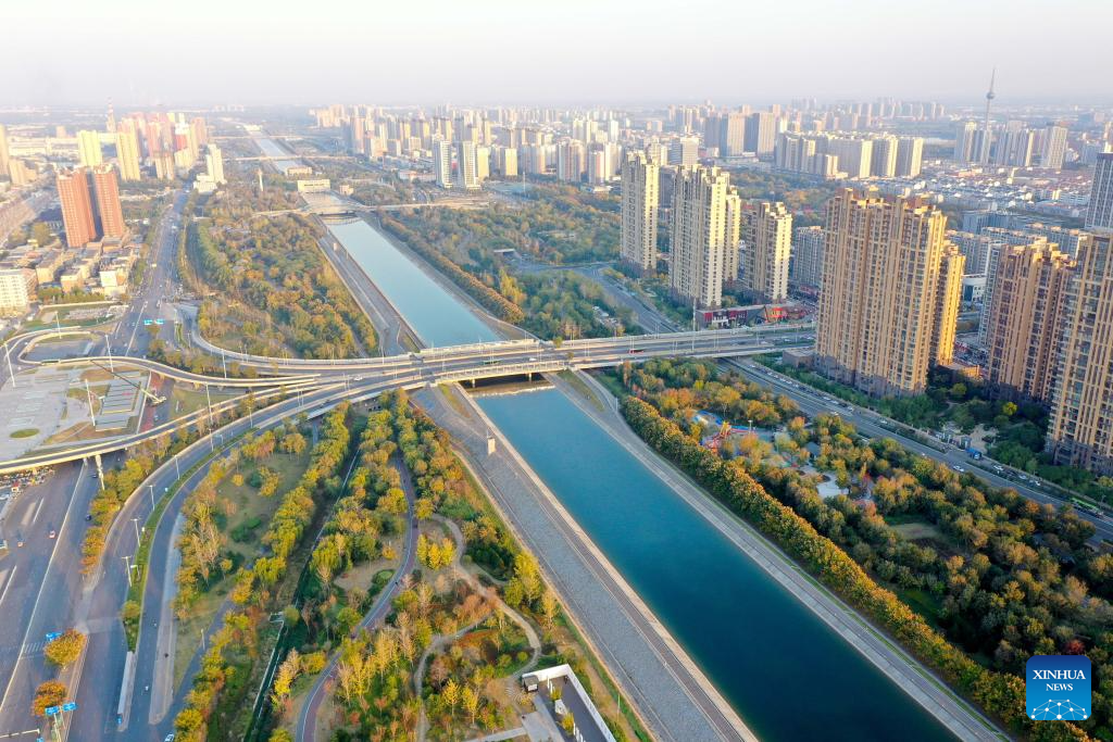 An aerial drone photo taken on Nov. 5, 2024 shows the main canal of China’s South-to-North Water Diversion Project in…