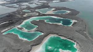 An aerial drone photo taken on April 19, 2025 shows the Jade Lake in Mangya, Haixi Mongolian and Tibetan Autonomous…