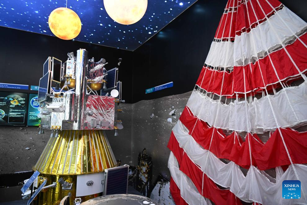 Visitors view Chang’e-6 mission lunar samples, collected from the far side of the moon, on display at the 15th China…