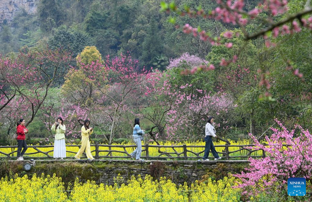 Tourists enjoy the spring view at China National Botanical Garden in Beijing, capital of China, April 4, 2025. Qingming Festival,…