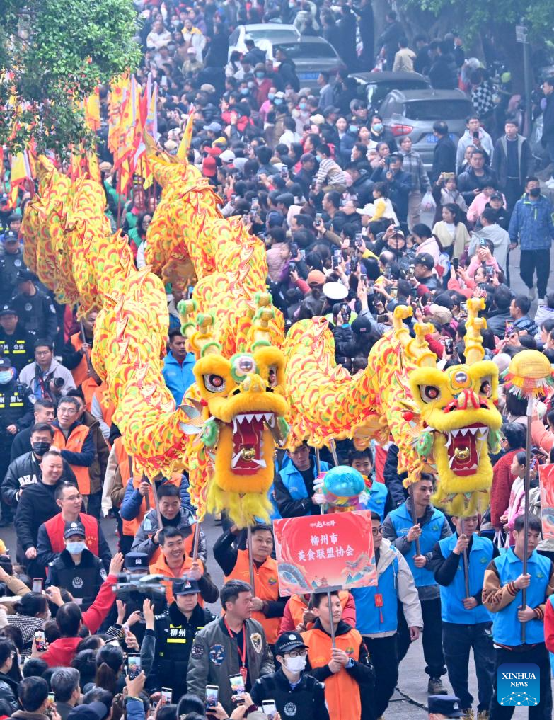 People enjoy lanterns at Bailuzhou Park in Nanjing, east China’s Jiangsu Province, Feb. 12, 2025. Various activities were held across…