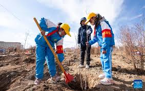 A staff member trims saplings at a tree cultivation base in Nagqu, southwest China’s Xizang Autonomous Region, April 25, 2025.…