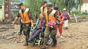 Members of the People’s Armed Police Force Gansu Corps search for missing individuals in Maliantan Village, Yuzhong County of northwest…