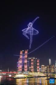 A drone light show is pictured in Nan’an District of southwest China’s Chongqing Municipality, April 19, 2025. The 15-minute drone…
