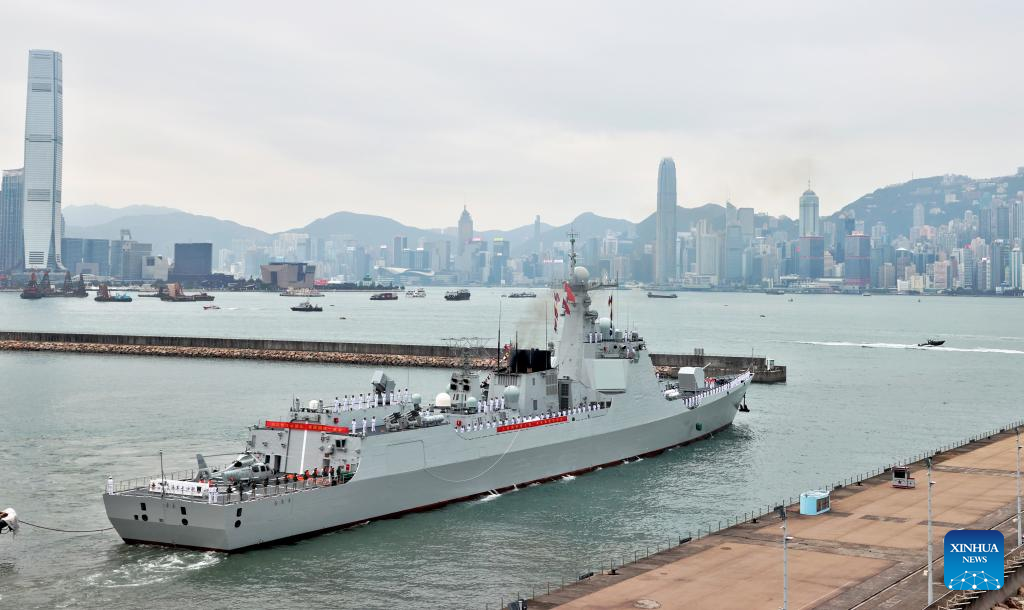 The Changsha missile destroyer leaves the dock of Stonecutters Island in Hong Kong, south China, Nov. 25, 2024. A Chinese…