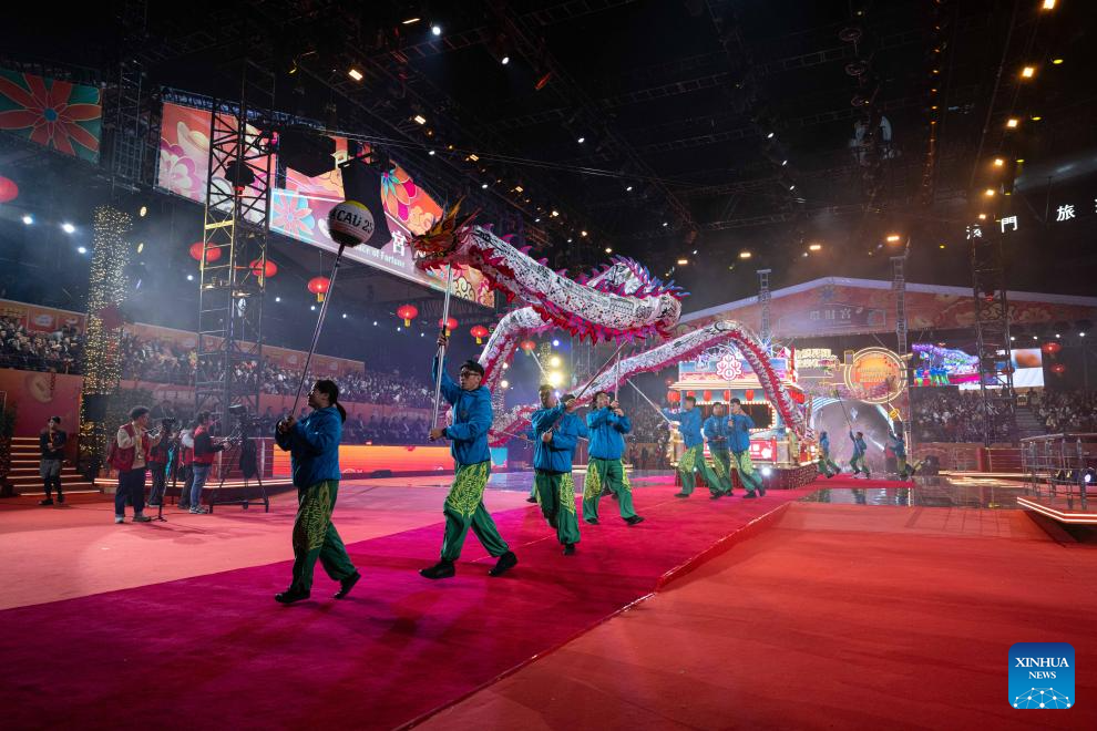 People perform during a parade in celebration of the Chinese New Year in Macao, south China, Jan. 31, 2025. A…