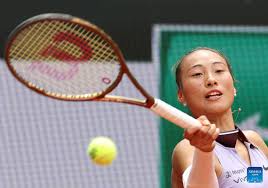 Zheng Qinwen celebrates after the women’s singles 4th round match between Liudmila Samsonova of Russia and Zheng Qinwen of China…
