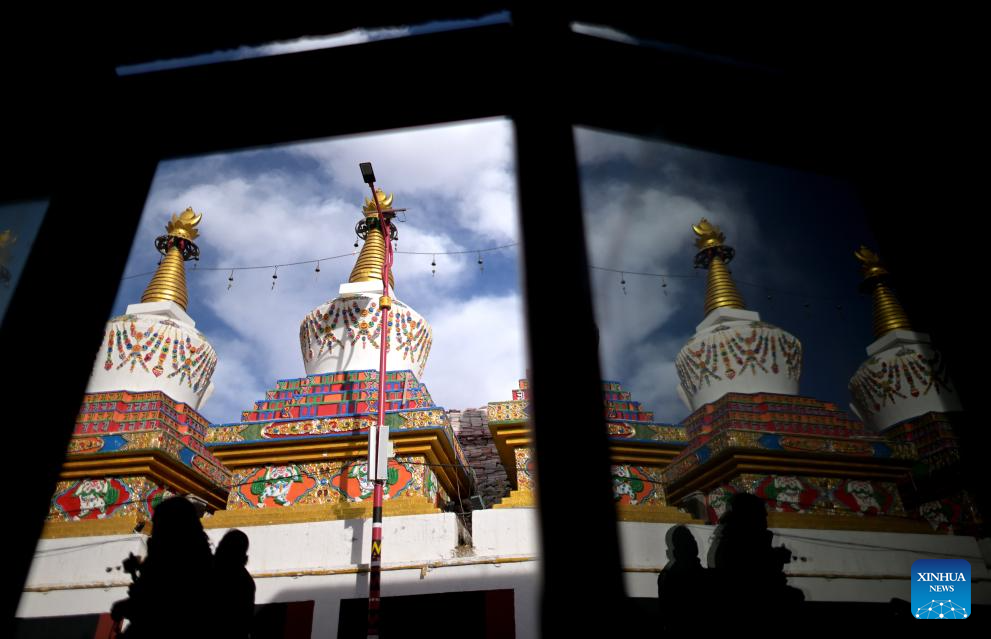 People pray as they circle the Jiana mani stone mound in Yushu City, Yushu Tibetan Autonomous Prefecture, northwest China’s Qinghai…