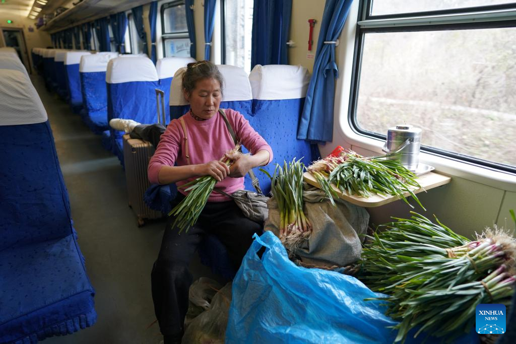 Passengers get on and off the No. 6064 train at the Yangpingguan Station in Hanzhong, northwest China’s Shaanxi Province, Feb.…