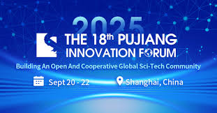 A staff member (2nd L) speaks with a visitor at the 2025 Pujiang Innovation Forum held in east China’s Shanghai,…