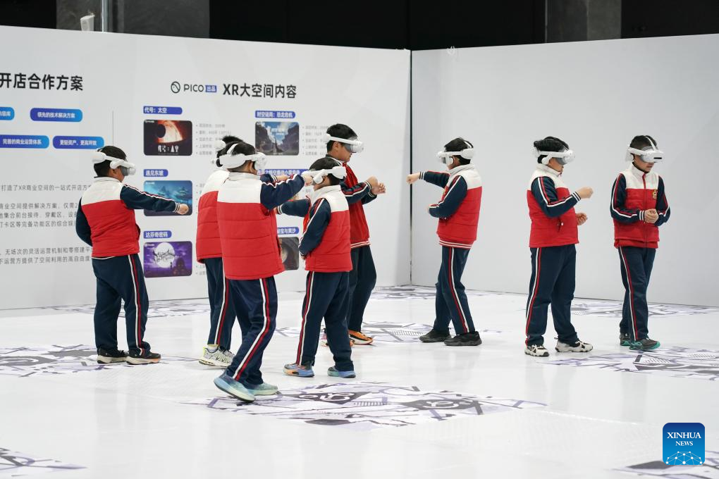 Visitors experience an immersive exhibition during the China Science Fiction Convention 2025 in Beijing, capital of China, March 28, 2025.…