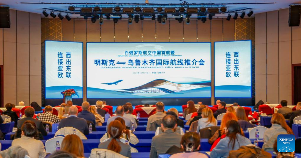 A promotion meeting on a new air route linking Urumqi, capital of northwest China’s Xinjiang Uygur Autonomous Region, and Minsk,…